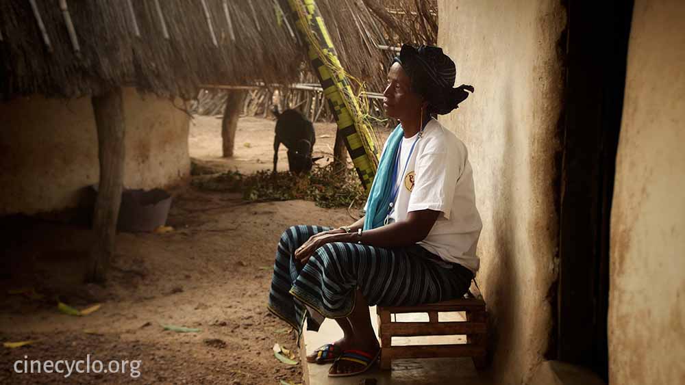 Après la Casamance, nous nous rendons vers notre seconde zone d'intervention qui se trouve à Tambacounda distant de 7 jours de vélos. Il nous est difficile de ne pas offrir de projection lorsque l'on s'arrête dans un village «étape» car tout le matériel est contenu dans une grosse caisse où il est inscrit « Cinécyclo », ce qui pique la curiosité de moindre passant. Le vélo est par ailleurs atypique puisqu'il s'agit d'un vélo cargo fait en France de la marque Douze-Cycles, très solide, maniable et démontable au demeurant. L'ensemble de mon matériel pèse 70 kilos alors que je n'en fais qu'une petite soixantaine.